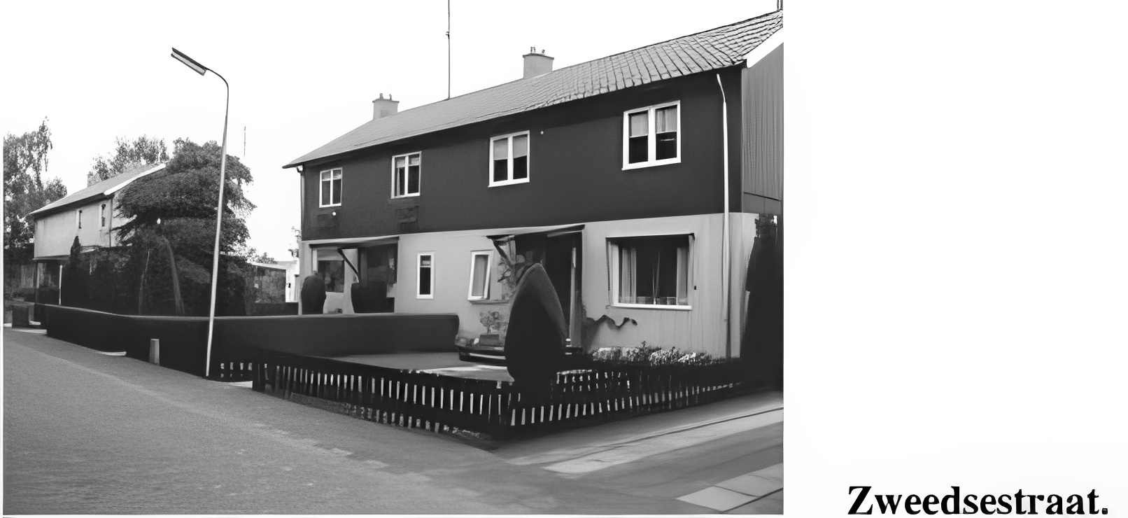 Met die benaming is de heer Luijkx (die metaaldraaier van beroep is) wel een beetje voorbarig, want de gemeenteraad moet de nieuwe wijk nog namen geven. Het schijnt echter zo voor de hand liggend dat deze buurt voor altijd de naam van het land dat de huizen schonk, zal krijgen dat men er nu al aan gaat wennen om te zeggen: „We wonen in de Zweedsestraat”. Het huisnummer zal vermoedelijk voor de Luijkx’en het cijfer l zijn. Ook dat is nog niet zeker. Het zijn zo van die zaken die voorlopig van weinig betekenis zijn. Halsteren is niet zo groot en de post en de krantenman zullen gauw genoeg weten wie de Scandinavische buurt bevolken en in welk blok ze te vinden zijn.