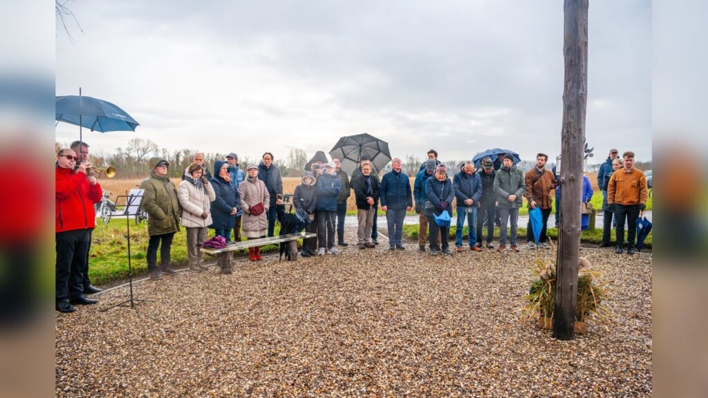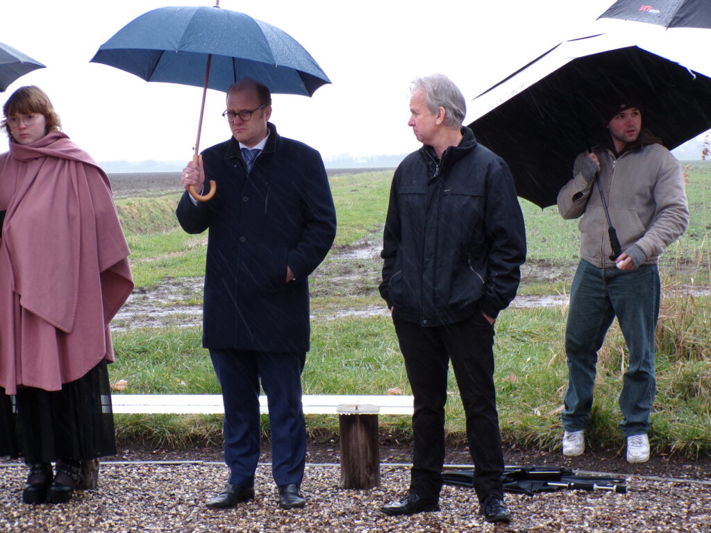 De regen mag met bakken uit de lucht komen, toch mag dat voor de ruim 50 aanwezigen, jong en oud, geen bezwaar zijn om de herdenking van de watersnoodramp aan zich voorbij te laten gaan. “Deze omstandigheden vallen in het niet bij wat de mensen hier 73 jaar geleden in deze polder hebben meegemaakt”, zo vertelt Eugène van den Eijnden, één van de organisatoren van de jaarlijkse herdenking bij monument “Signalen in het landschap” in de Halsterse Auvergnepolder. Na afloop van de ceremonie in de polder was er een samenkomst bij het heemhuis “Hof van Ram”.