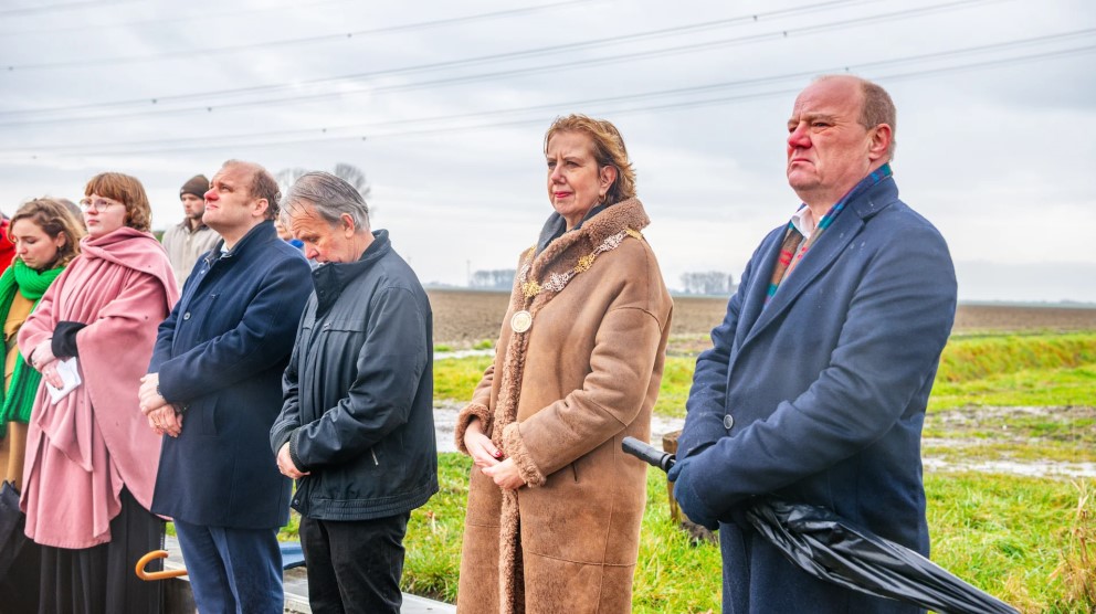 Sober en ingetogen is de plechtigheid in de Halsterse polder. “In 1953 was er nog maar weinig ruimte voor het tonen van emoties; niet stilstaan maar doorgaan was toen het credo. Gelukkig is er anno 2026 de ruimte om deze emoties alsnog bespreekbaar te maken”, zo benadrukt burgemeester Mulder.